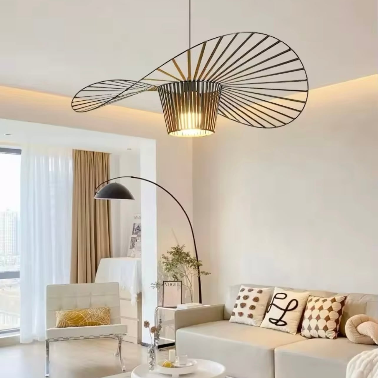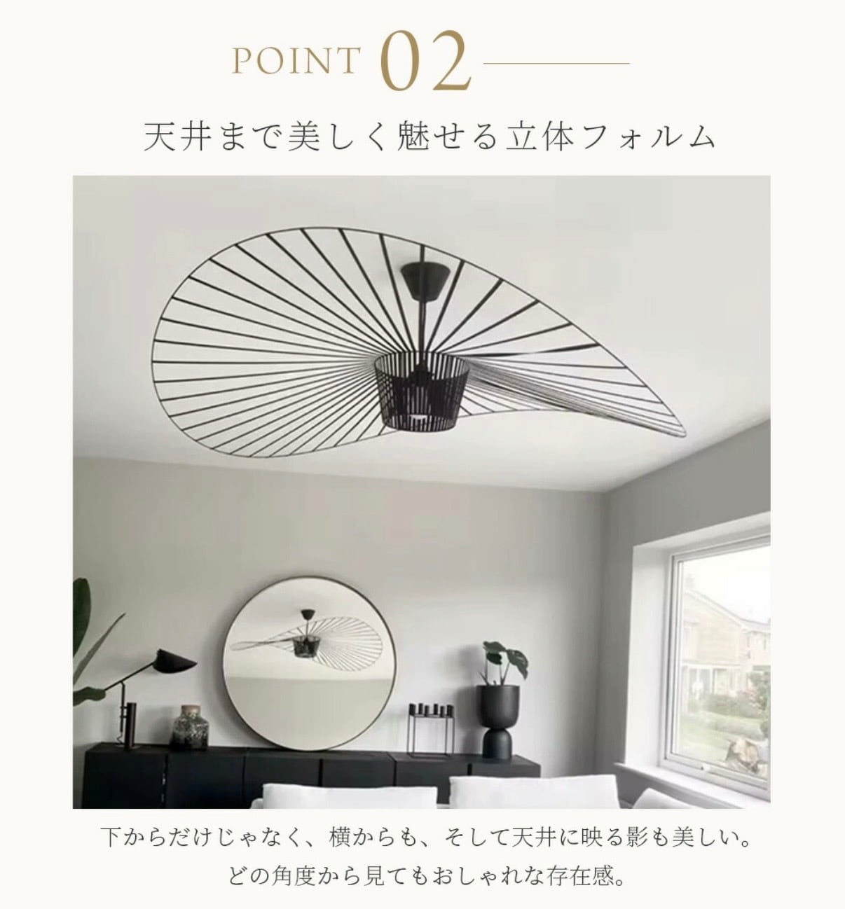 ハットに似たデザインで、インテリアにアクセントを加えます。柔らかな光が空間全体を包み込み、温もりのある雰囲気を演出します。