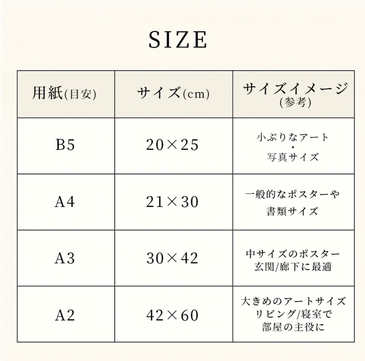 ※商品は、フレームなしのキャンバスのみの販売です。フレームは別途ご購入いただく必要がございます。お好みのフレームで、デザインや空間に合うようにアレンジしてみてください。
