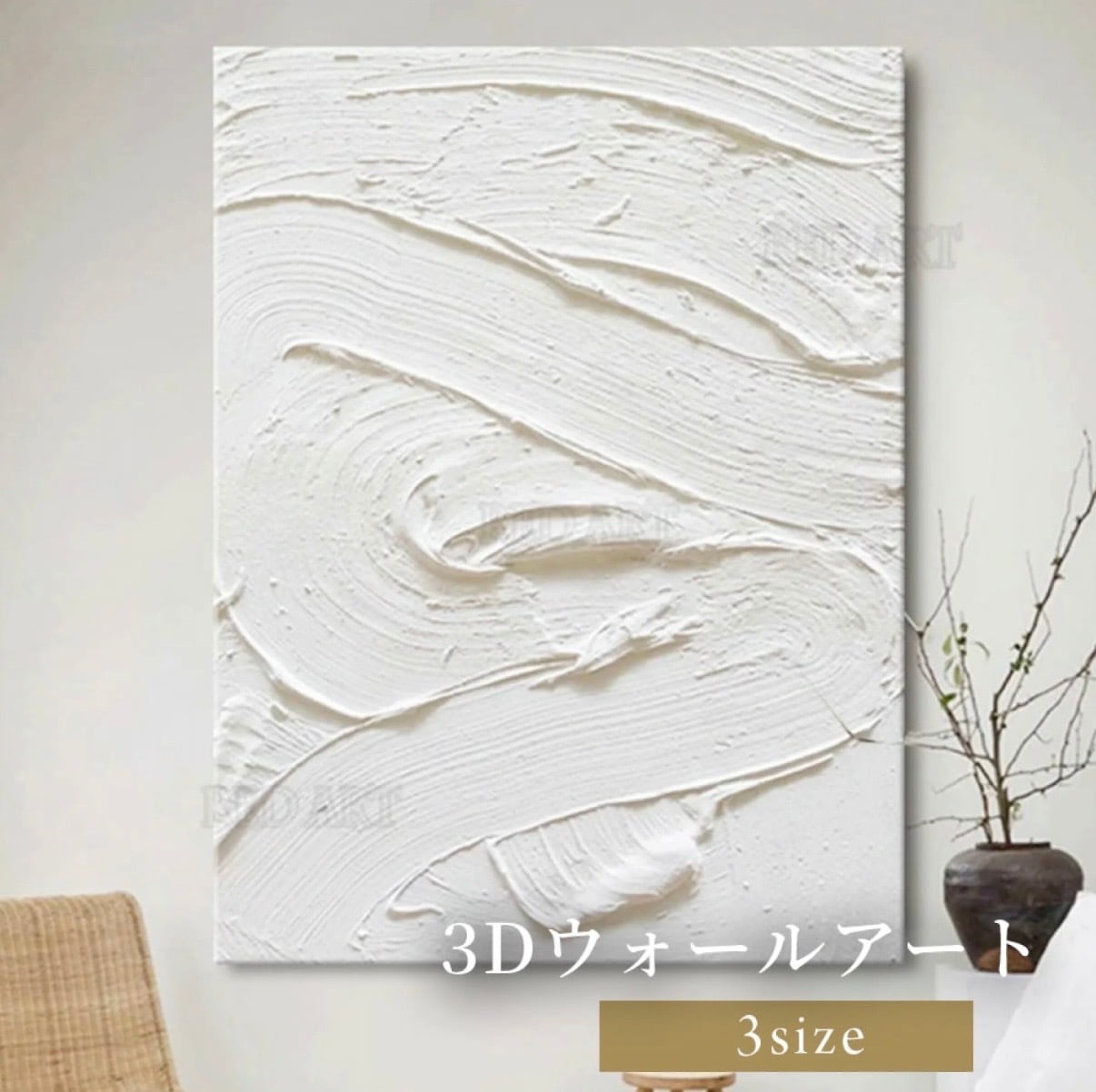 ホワイトカラーの美しい抽象画、それも3Dで表現されたモダンな雰囲気の壁アート。美術館に展示されるような作品の一つです。