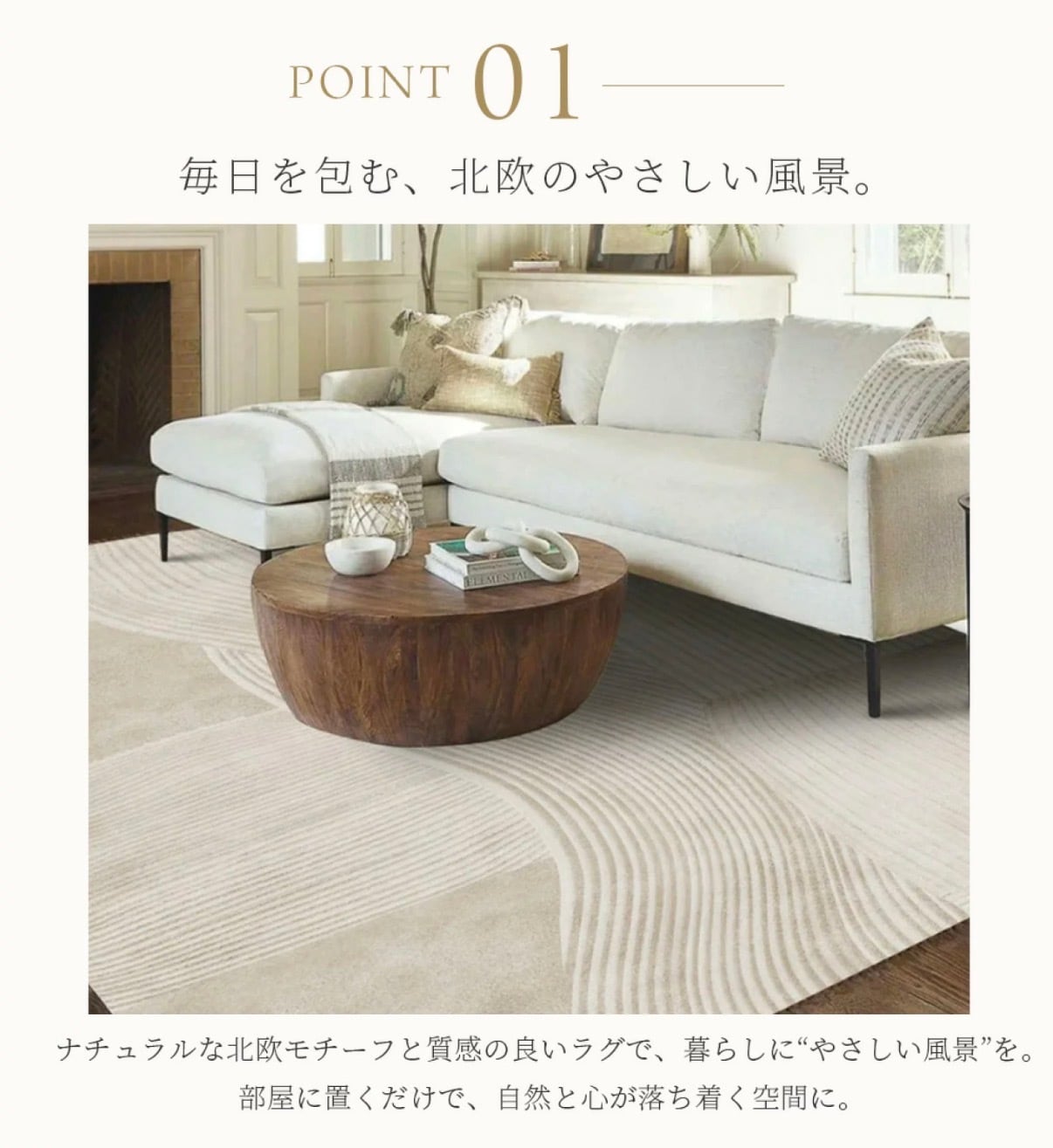 This carpet features a simple and minimalist design, perfect for Scandinavian-inspired interiors. It adds a modern touch to any room while maintaining a clean, understated aesthetic.