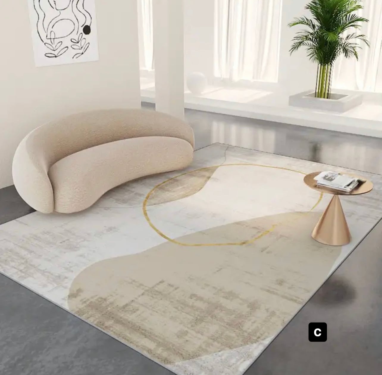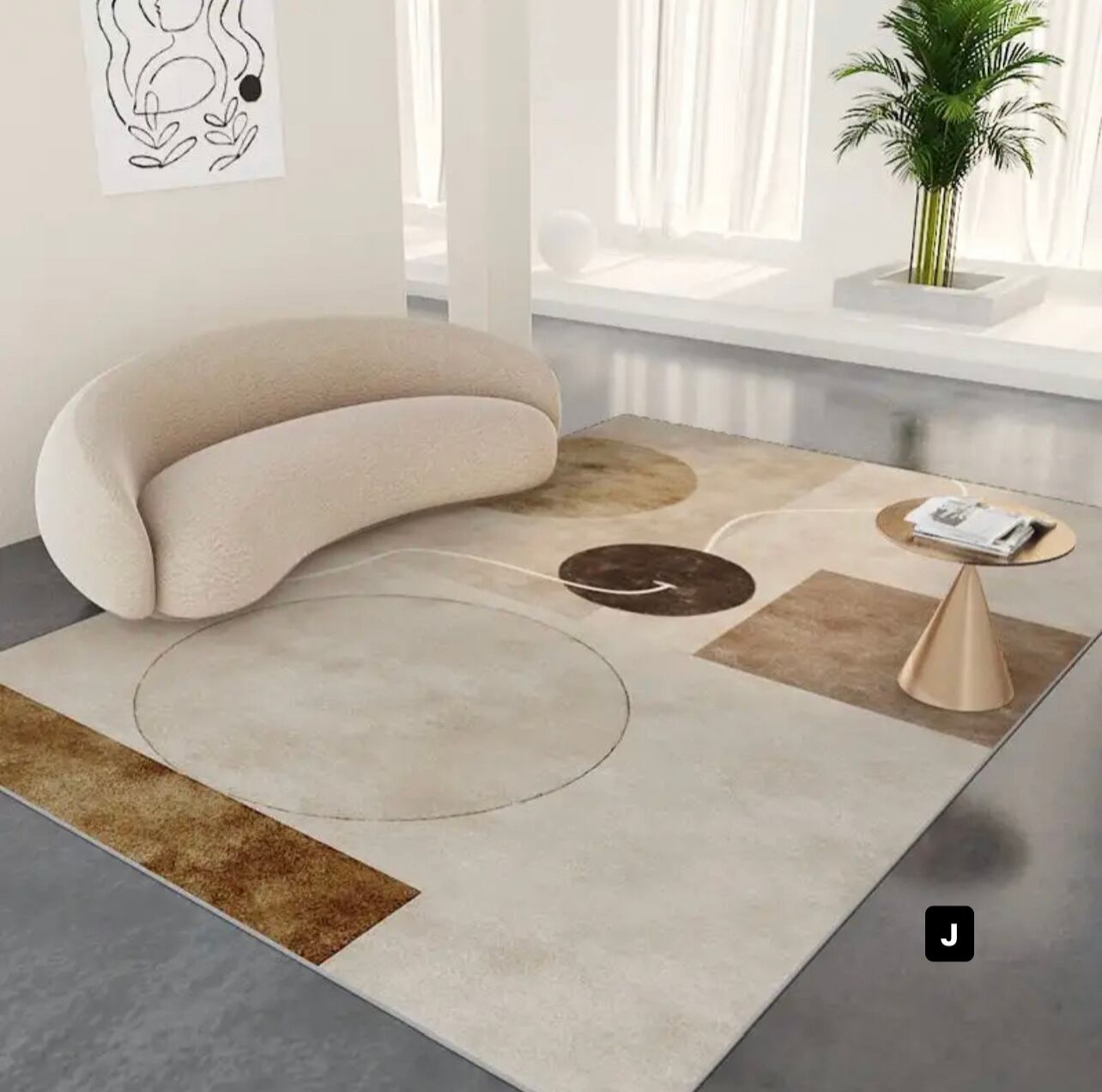 抽象的な柄がインテリアにアクセントを与え、モダンでスタイリッシュな雰囲気を作り出します。
