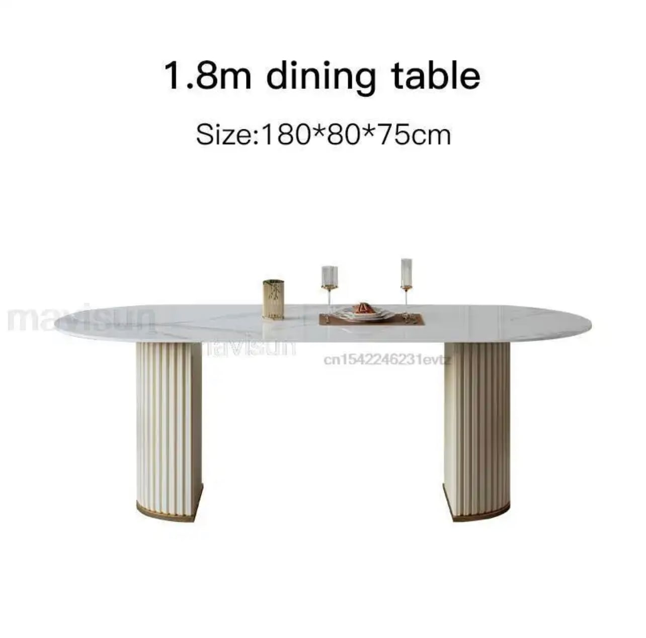 テーブルトップには光沢のあるロックボードを使用し、さらに耐久性も兼ね備えています。アイボリーキッチンと椅子との組み合わせで、優雅なテーブルコーディネートが実現します。