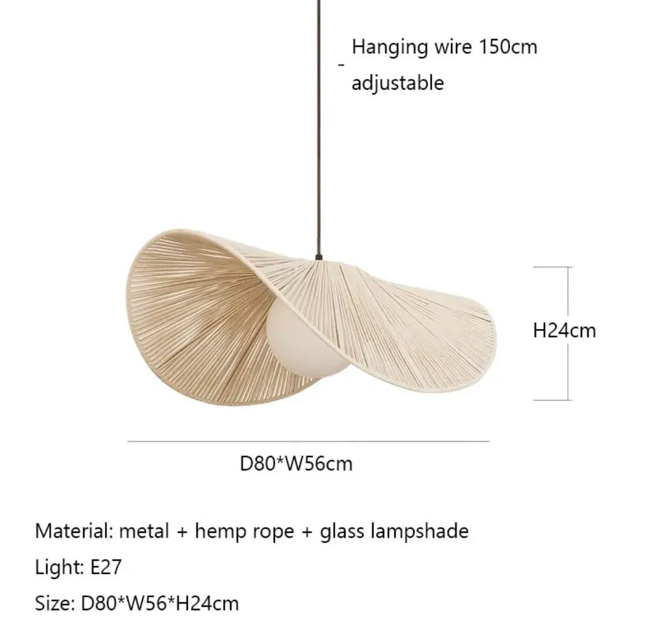 コットンロープやストローハットがアクセントになっており、ワビ・サビの風合いも感じられます。