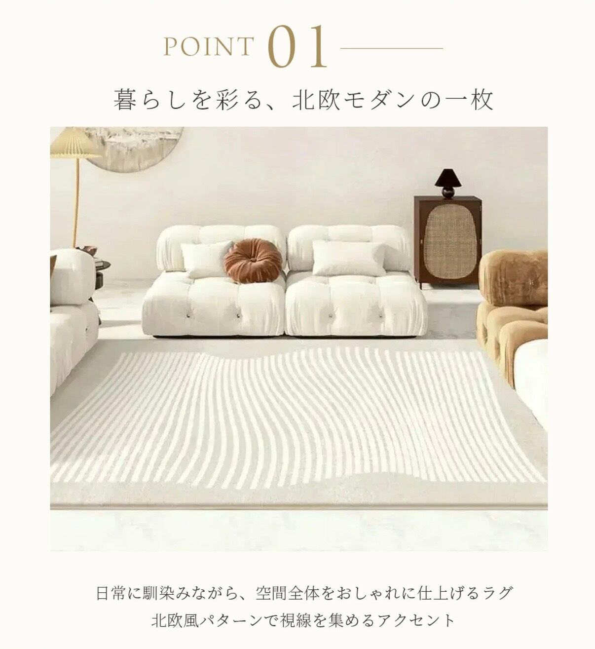 豊かな色彩と優れたデザインが調和し、リビングルームや寝室などの床をスタイリッシュに演出します。