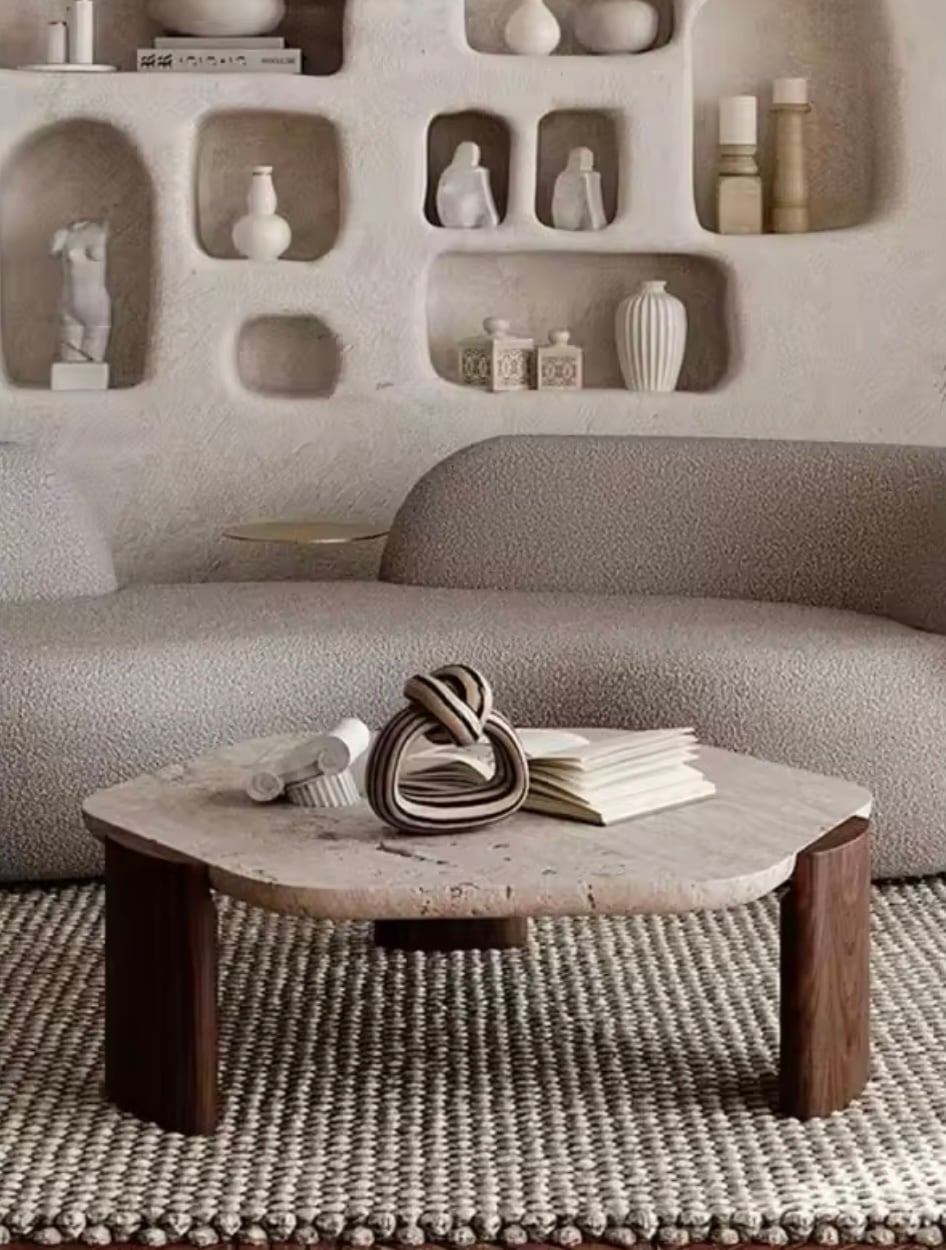 天然石を使用したこのテーブルは、自然の美しさを存分に引き立てる一品。どんなインテリアにもマッチし、上質な空間を演出します。
